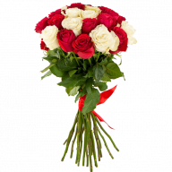 Смесь белых и красных роз в одном букете придаст ему большего значения, комбинируя символизм каждого отдельно взятого цвета. Белые розы – признак нежности и чистой любви, а красные раскроют чувства с эмоциональной точки зрения, добавят страсти и насыщенности. Букет подойдет для выражения сильных чувств, напомнит об истинности любви, поможет получить долгожданное прощение и придать новых красок отношениям.